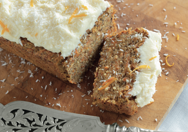 Für den Teig die Eier trennen und die Eiweiße mit dem Salz steif schlagen. Die Möhren putzen, schälen und fein ras-peln. Den Backofen auf 180 °C vorheizen. Den Boden einer Kastenform mit Back-papier belegen, den Rand buttern. Möhren, Eigelbe, Haselnüsse, Mandeln, Zucker, Mehl, Backpulver, Zimt und Orangenabrieb in einer Schüssel verrühren. Dann nach und nach behutsam den Eischnee mit einem Teigschaber unter-heben. Den Teig gleichmäßig in die Form füllen und 40-45 Minuten backen. Anschließend aus der Form nehmen und vollständig auskühlen lassen.