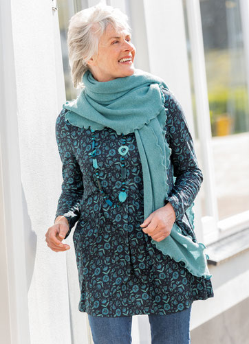 Feinste Aplaka-Wolle für einen luftig leichten und doch wärmenden Schal 55% Alpaka, 30% Schurwolle, 15% Polyamid. Pflege: Handwäsche. Maße ca. 75 x 230 cm. Fertigung in Litauen.