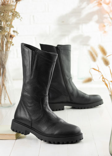 Schafthöhe ca. 26 cm, Gummisohle, Absatzhöhe ca. 2 cm.