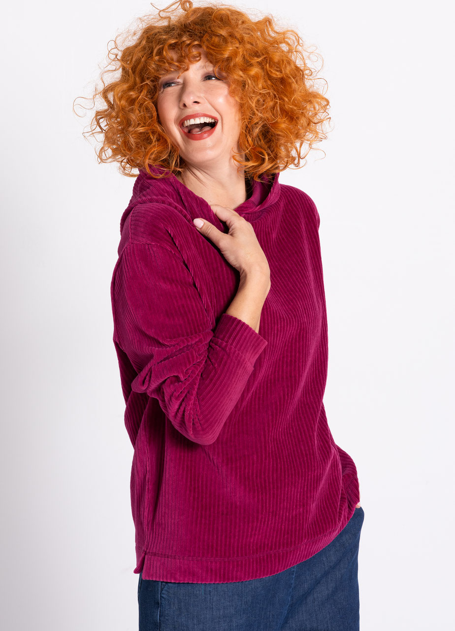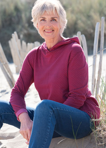 Heute so, morgen so... Kapuzenshirt zum Wenden aus 100% Baumwolle (kbA). Pflege: Schonwäsche 30°. Länge bei Gr. M ca. 67 cm. Fertigung in Dänemark.